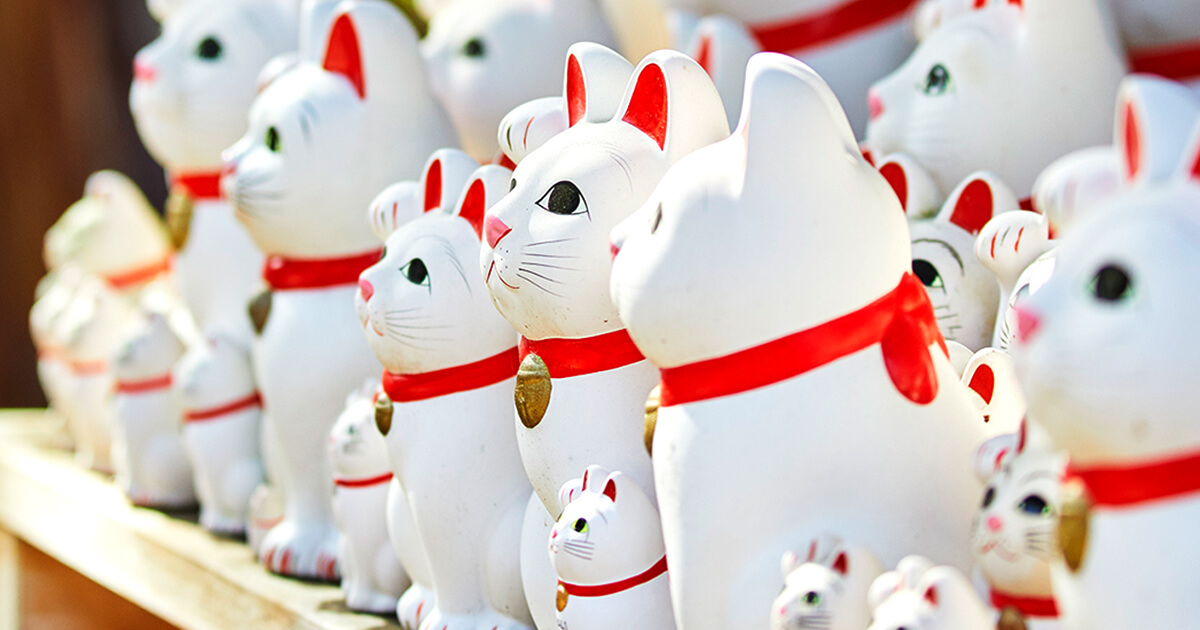 Gotokuji Temple is located at Gotokuji Station on the Odakyu Line. This temple is said to be the birthplace of beckoning cats, and there are many beckoning cats on the temple grounds.
